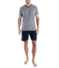Het T-shirt heeft een comfortabele ronde hals en een tijdloos design dat moeiteloos aansluit bij de casual stijl van de korte broek. De short is voorzien van een elastische tailleband met trekkoord voor een persoonlijke pasvorm en maximale bewegingsvrijheid. Dankzij de ademende eigenschappen van katoen is deze set ideaal voor warme nachten of ontspannen momenten thuis.